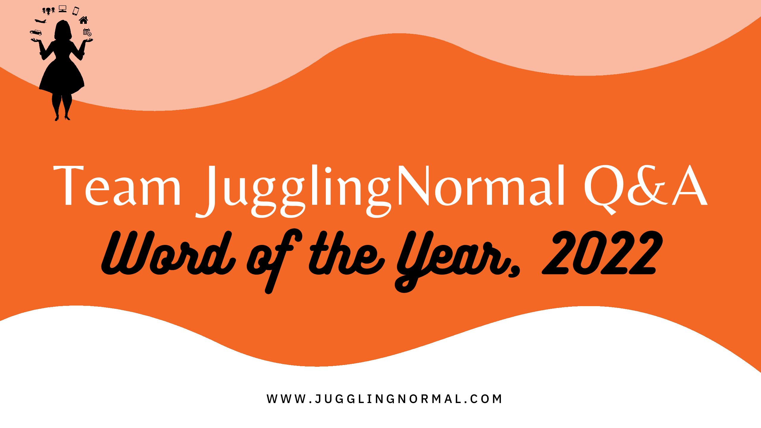 Hello friends! Team Juggling Normal has been busy, juggling all the things and living our best lives as we all move into the new year…and we are a little behind on posting our theme words for 2022. We started this little tradition last year, and we think it’s a great way to look ahead to the new year with some optimism. It’s our way of skirting the idea of a new year’s resolution (how many of us actually follow those?), and trying to come up with something constructive. So, without further ado, here are the word of the year picks from us!